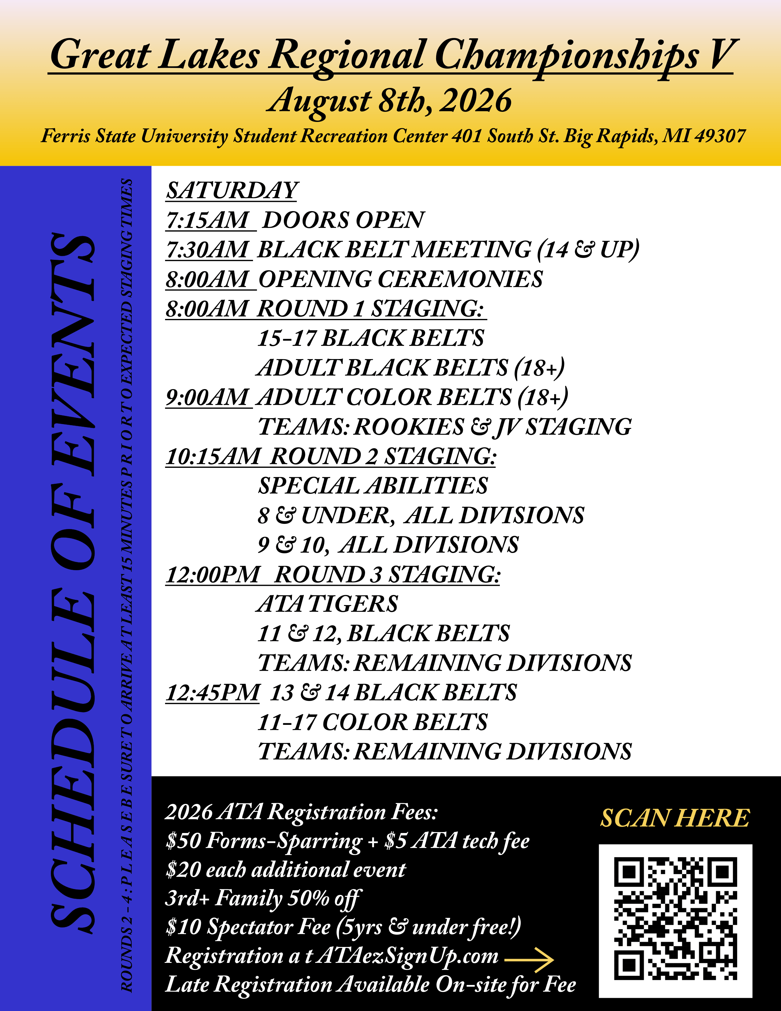 Location: Ferris State University Student Recreation Center, 401 South St. Big Rapids, MI, 49307.